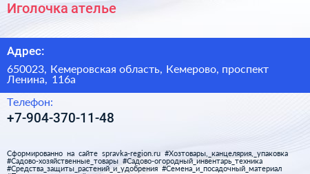 Иголочка, ателье по адресу 650023, Кемеровская область, Кемерово, проспект Ленина, 116а в дальнейшем Организация, размещена в следующих категориях: