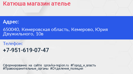 Катюша, магазин-ателье по адресу 650040, Кемеровская область, Кемерово, Юрия Двужильного, 10в в дальнейшем Организация, размещена в следующих категориях:
