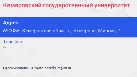 Кемеровский государственный университет по адресу 650036, Кемеровская область, Кемерово, Мирная, 4 в дальнейшем Организация, размещена в следующих категориях: