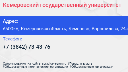 Кемеровский государственный университет по адресу 650056, Кемеровская область, Кемерово, Ворошилова, 24а в дальнейшем Организация, размещена в следующих категориях: