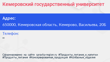 Кемеровский государственный университет по адресу 650000, Кемеровская область, Кемерово, Васильева, 20Б в дальнейшем Организация, размещена в следующих категориях: