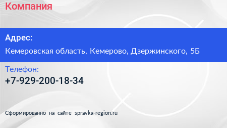 Компания по адресу Кемеровская область, Кемерово, Дзержинского, 5Б в дальнейшем Организация, размещена в следующих категориях: