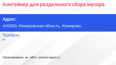 Контейнер для раздельного сбора мусора по адресу 650000, Кемеровская область, Кемерово, в дальнейшем Организация, размещена в следующих категориях: