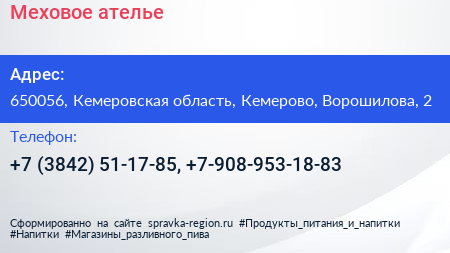 Меховое ателье по адресу 650056, Кемеровская область, Кемерово, Ворошилова, 2 в дальнейшем Организация, размещена в следующих категориях: