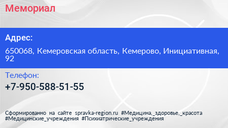 Мемориал по адресу 650068, Кемеровская область, Кемерово, Инициативная, 92 в дальнейшем Организация, размещена в следующих категориях: