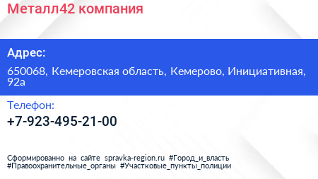 Металл42, компания по адресу 650068, Кемеровская область, Кемерово, Инициативная, 92а в дальнейшем Организация, размещена в следующих категориях: