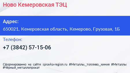 Ново-Кемеровская ТЭЦ по адресу 650021, Кемеровская область, Кемерово, Грузовая, 1Б в дальнейшем Организация, размещена в следующих категориях: