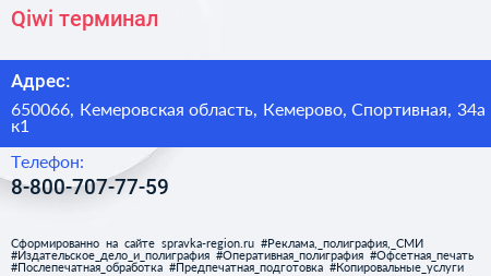 Qiwi, терминал по адресу 650066, Кемеровская область, Кемерово, Спортивная, 34а к1 в дальнейшем Организация, размещена в следующих категориях:
