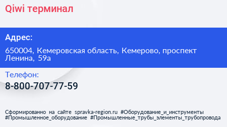 Qiwi, терминал по адресу 650004, Кемеровская область, Кемерово, проспект Ленина, 59а в дальнейшем Организация, размещена в следующих категориях: