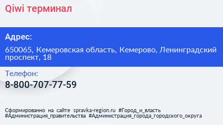 Qiwi, терминал по адресу 650065, Кемеровская область, Кемерово, Ленинградский проспект, 18 в дальнейшем Организация, размещена в следующих категориях: