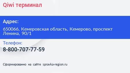 Qiwi, терминал по адресу 650066, Кемеровская область, Кемерово, проспект Ленина, 90/1 в дальнейшем Организация, размещена в следующих категориях: