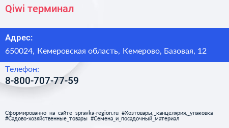 Qiwi, терминал по адресу 650024, Кемеровская область, Кемерово, Базовая, 12 в дальнейшем Организация, размещена в следующих категориях: