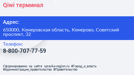 Qiwi, терминал по адресу 650000, Кемеровская область, Кемерово, Советский проспект, 32 в дальнейшем Организация, размещена в следующих категориях: