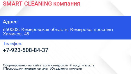 SMART CLEANING, компания по адресу 650003, Кемеровская область, Кемерово, проспект Химиков, 49 в дальнейшем Организация, размещена в следующих категориях: