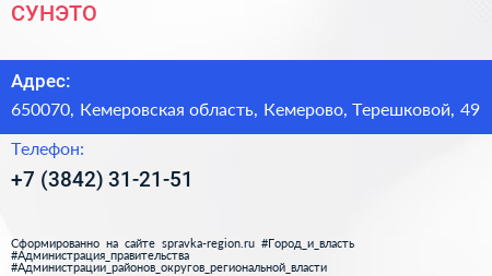 СУНЭТО по адресу 650070, Кемеровская область, Кемерово, Терешковой, 49 в дальнейшем Организация, размещена в следующих категориях: