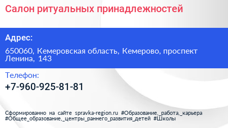 Салон ритуальных принадлежностей по адресу 650060, Кемеровская область, Кемерово, проспект Ленина, 143 в дальнейшем Организация, размещена в следующих категориях: