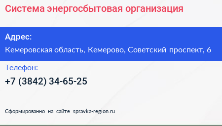 Система, энергосбытовая организация по адресу Кемеровская область, Кемерово, Советский проспект, 6 в дальнейшем Организация, размещена в следующих категориях: