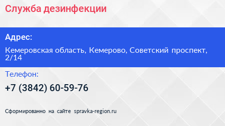 Служба дезинфекции по адресу Кемеровская область, Кемерово, Советский проспект, 2/14 в дальнейшем Организация, размещена в следующих категориях: