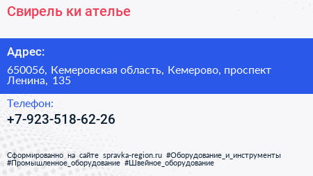 Свирель-ки, ателье по адресу 650056, Кемеровская область, Кемерово, проспект Ленина, 135 в дальнейшем Организация, размещена в следующих категориях: