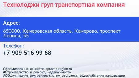 Технолоджи груп, транспортная компания по адресу 650000, Кемеровская область, Кемерово, проспект Ленина, 55 в дальнейшем Организация, размещена в следующих категориях: