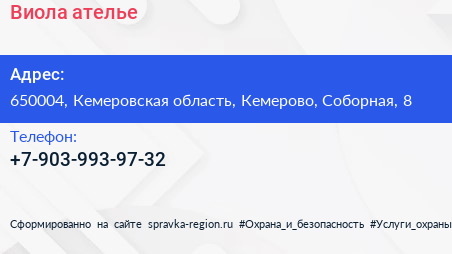 Виола, ателье по адресу 650004, Кемеровская область, Кемерово, Соборная, 8 в дальнейшем Организация, размещена в следующих категориях: