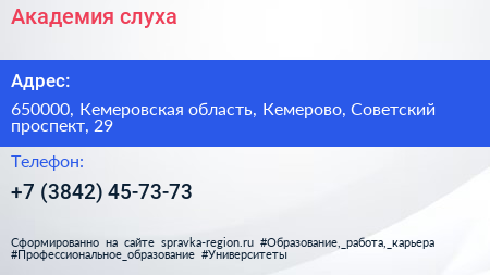Академия слуха по адресу 650000, Кемеровская область, Кемерово, Советский проспект, 29 в дальнейшем Организация, размещена в следующих категориях: