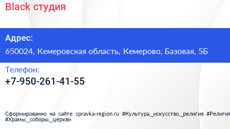 Black, студия по адресу 650024, Кемеровская область, Кемерово, Базовая, 5Б в дальнейшем Организация, размещена в следующих категориях: