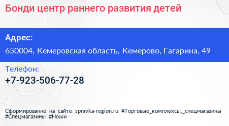 Бонди, центр раннего развития детей по адресу 650004, Кемеровская область, Кемерово, Гагарина, 49 в дальнейшем Организация, размещена в следующих категориях: