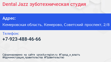 Dental Jazz, зуботехническая студия по адресу Кемеровская область, Кемерово, Советский проспект, 2/8 в дальнейшем Организация, размещена в следующих категориях: