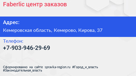 Faberlic, центр заказов по адресу Кемеровская область, Кемерово, Кирова, 37 в дальнейшем Организация, размещена в следующих категориях: