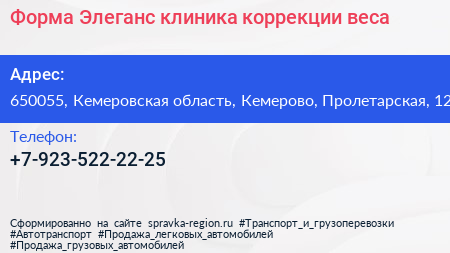 Форма Элеганс, клиника коррекции веса по адресу 650055, Кемеровская область, Кемерово, Пролетарская, 12 в дальнейшем Организация, размещена в следующих категориях: