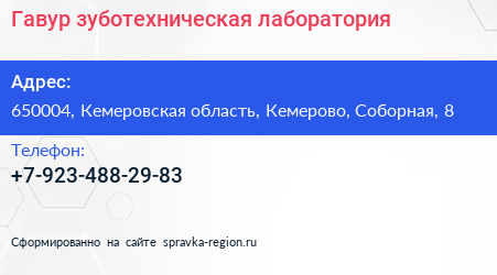 Гавур, зуботехническая лаборатория по адресу 650004, Кемеровская область, Кемерово, Соборная, 8 в дальнейшем Организация, размещена в следующих категориях: