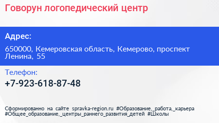 Говорун, логопедический центр по адресу 650000, Кемеровская область, Кемерово, проспект Ленина, 55 в дальнейшем Организация, размещена в следующих категориях: