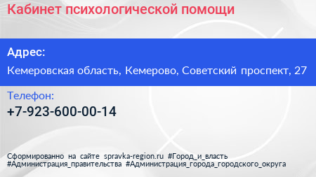 Кабинет психологической помощи по адресу Кемеровская область, Кемерово, Советский проспект, 27 в дальнейшем Организация, размещена в следующих категориях:
