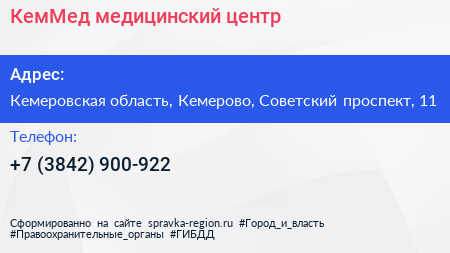 КемМед, медицинский центр по адресу Кемеровская область, Кемерово, Советский проспект, 11 в дальнейшем Организация, размещена в следующих категориях: