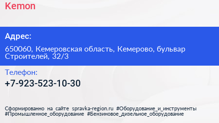 Kemon по адресу 650060, Кемеровская область, Кемерово, бульвар Строителей, 32/3 в дальнейшем Организация, размещена в следующих категориях:
