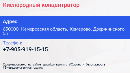 Кислородный концентратор по адресу 650000, Кемеровская область, Кемерово, Дзержинского, 5а в дальнейшем Организация, размещена в следующих категориях: