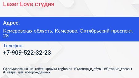 Laser Love, студия по адресу Кемеровская область, Кемерово, Октябрьский проспект, 28 в дальнейшем Организация, размещена в следующих категориях: