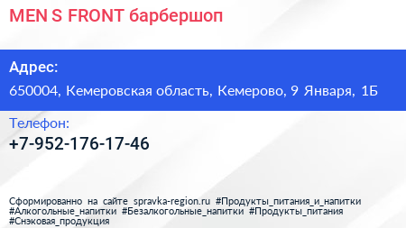 MEN`S FRONT, барбершоп по адресу 650004, Кемеровская область, Кемерово, 9 Января, 1Б в дальнейшем Организация, размещена в следующих категориях: