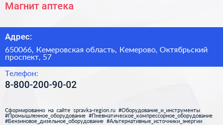 Магнит, аптека по адресу 650066, Кемеровская область, Кемерово, Октябрьский проспект, 57 в дальнейшем Организация, размещена в следующих категориях: