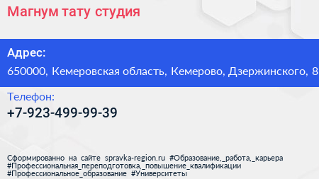 Магнум, тату-студия по адресу 650000, Кемеровская область, Кемерово, Дзержинского, 8 в дальнейшем Организация, размещена в следующих категориях: