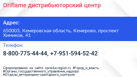 Oriflame, дистрибьюторский центр по адресу 650003, Кемеровская область, Кемерово, проспект Химиков, 41 в дальнейшем Организация, размещена в следующих категориях: