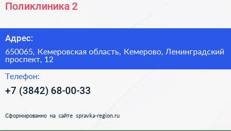Поликлиника №2 по адресу 650065, Кемеровская область, Кемерово, Ленинградский проспект, 12 в дальнейшем Организация, размещена в следующих категориях: