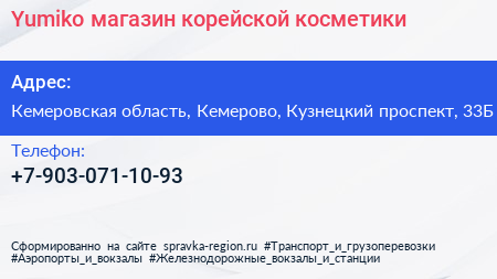 Yumiko, магазин корейской косметики по адресу Кемеровская область, Кемерово, Кузнецкий проспект, 33Б в дальнейшем Организация, размещена в следующих категориях: