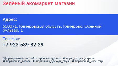 Зелёный экомаркет, магазин по адресу 650071, Кемеровская область, Кемерово, Осенний бульвар, 1 в дальнейшем Организация, размещена в следующих категориях: