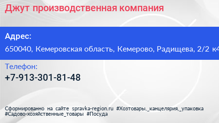 Джут, производственная компания по адресу 650040, Кемеровская область, Кемерово, Радищева, 2/2 к4 в дальнейшем Организация, размещена в следующих категориях: