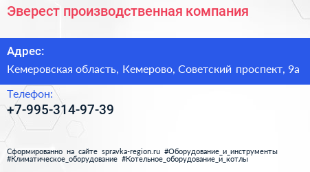 Эверест, производственная компания по адресу Кемеровская область, Кемерово, Советский проспект, 9а в дальнейшем Организация, размещена в следующих категориях:
