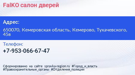 FalKO, салон дверей по адресу 650070, Кемеровская область, Кемерово, Тухачевского, 45в в дальнейшем Организация, размещена в следующих категориях: