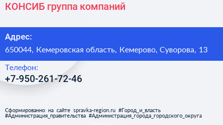 КОНСИБ, группа компаний по адресу 650044, Кемеровская область, Кемерово, Суворова, 13 в дальнейшем Организация, размещена в следующих категориях: