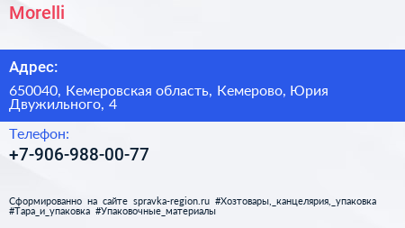 Morelli по адресу 650040, Кемеровская область, Кемерово, Юрия Двужильного, 4 в дальнейшем Организация, размещена в следующих категориях: